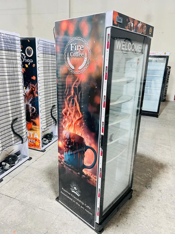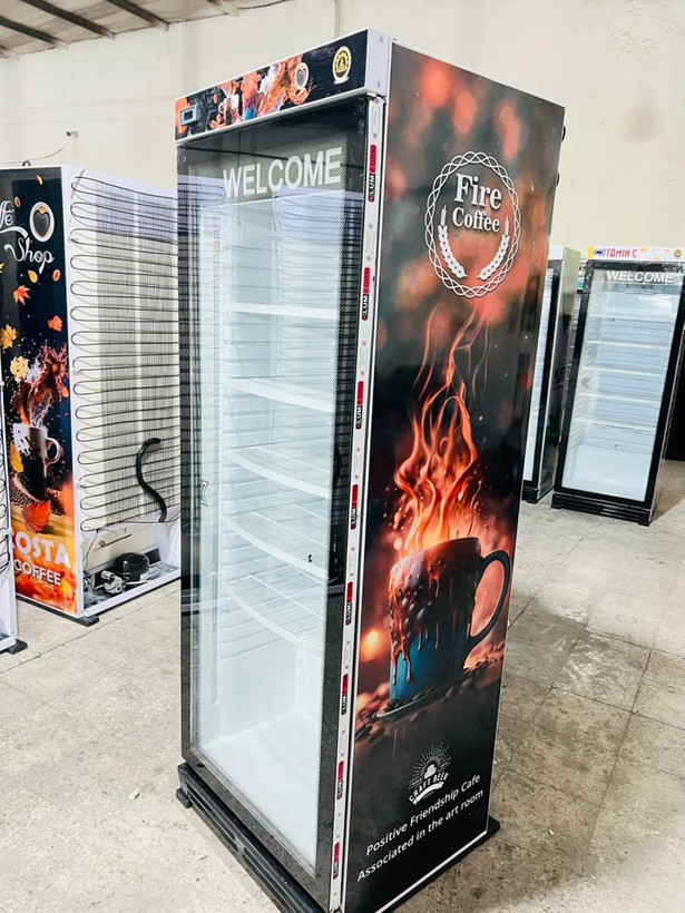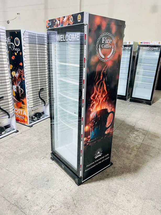 یخچال ویترینی ایستاده عرض 70 سانت طرح کافه FIRE COFFEE تاج کوتاه