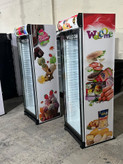 فریزر بستنی ایستاده ویترینی عرض 70 سانت تک درب طرح پروتئین و فست فود